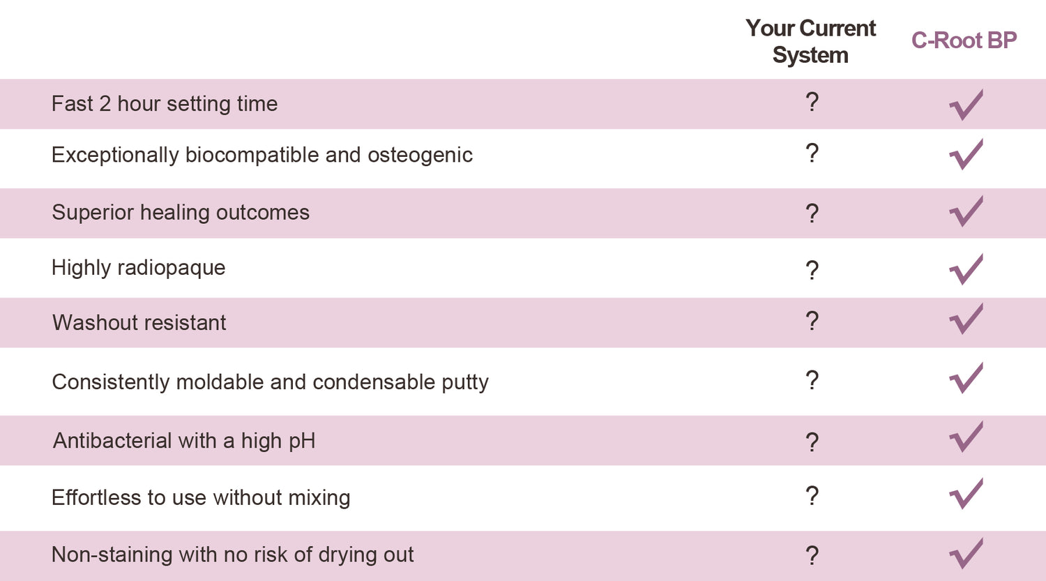 C-Root BP is pre-mixed bioceramic root repair material, designed for optimal handling and placement efficiency, using the same patented strontium silicate as C-Root SP.