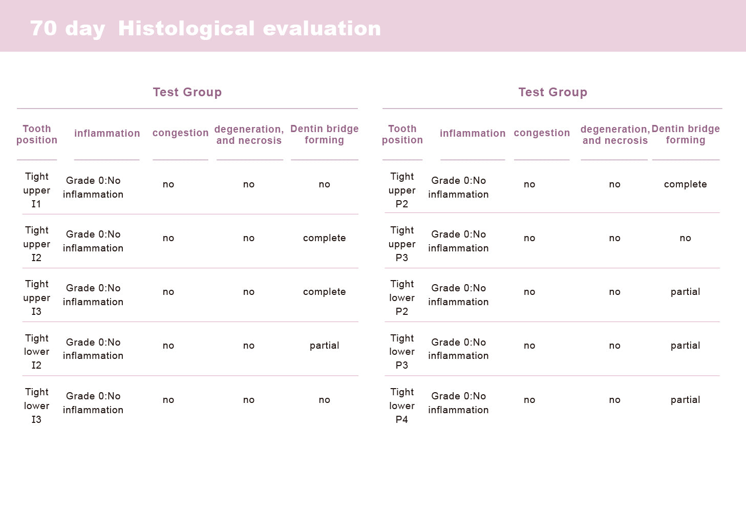 C-Root BP mimics the formation of protective dentin in living pulp exposures. Test results show that 70 days after filling, the dentin bridge formation rate can reach 70%. In the control group of 5 teeth tested, the rate of dentin bridge formation was 60%, 1 complete, 2 partial, and 2 absent, which was lower than the C-Root BP in the test group.